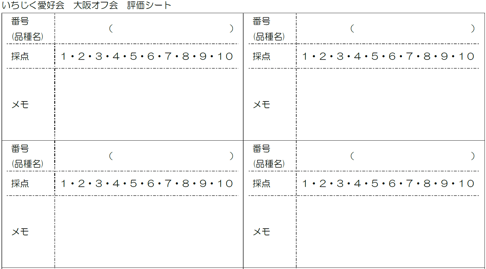 大阪オフ会で記入いただく用紙フォーマットをご連絡します。